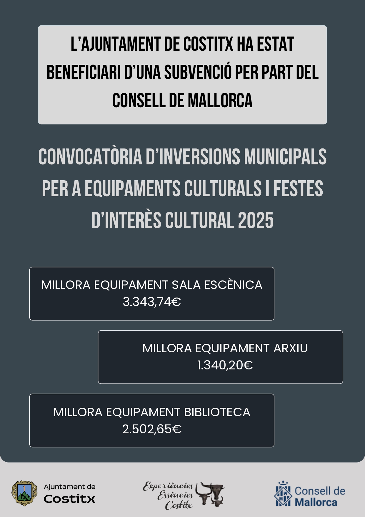 Convocatòria d’inversions municipals per a equipaments culturals i festes d'interès cultural 2025