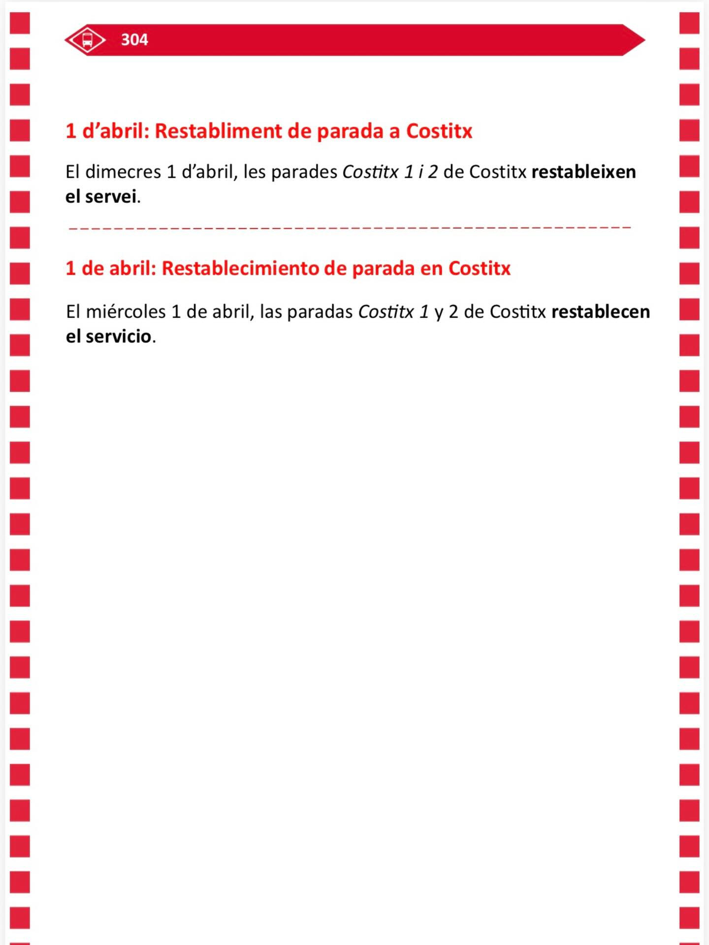 A partir del dimecres 1 d’abril, les parades Costitx 1 i Costitx 2 tornen a estar en servei.